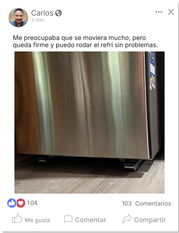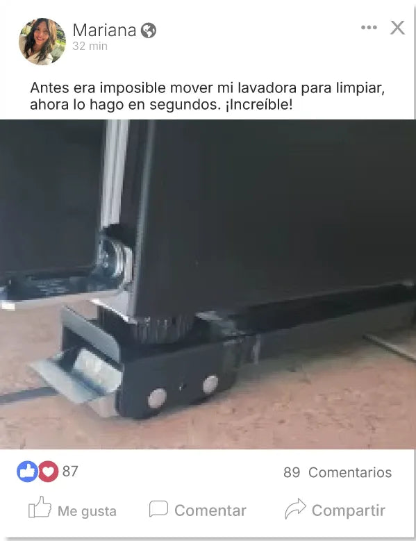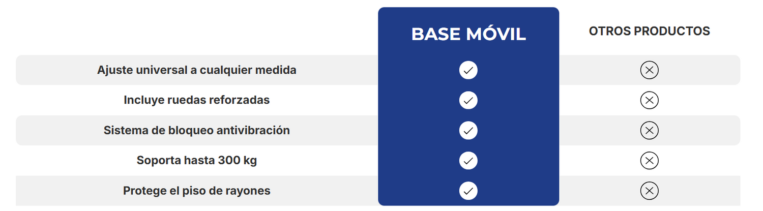 Con la Base Móvil olvídate de cargar peso, sufrir dolores de espalda o rayar el piso. Su diseño ajustable y ruedas reforzadas te permiten deslizar tus electrodomésticos grandes con un solo movimiento.