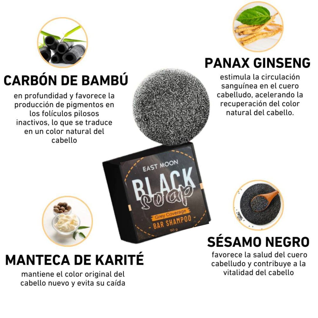 BLACK SOAP se ha desarrollado específicamente para combatir las canas tanto en el cabello como en la barba. Sus ingredientes naturales activan instantáneamente las células pigmentarias inactivas de los folículos pilosos para detener el encanecimiento. Utilizando ingredientes naturales como la vitamina E y aceites vegetales, restaura el color natural del cabello.