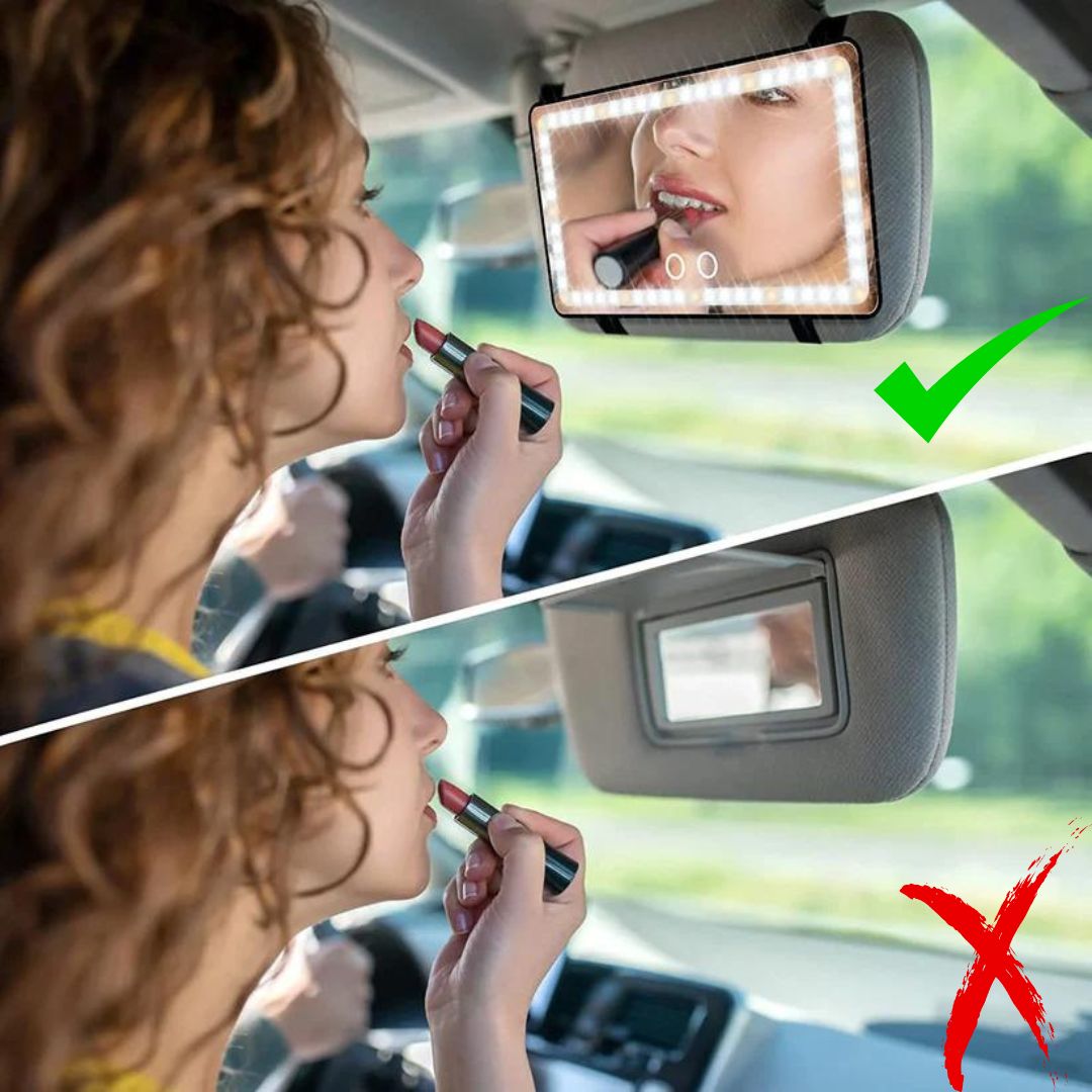 El espejo para automóvil es su secreto para una belleza radiante, incluso cuando el mundo que lo rodea está oscuro. Mientras navegas por la noche, la suave iluminación LED te brinda la luz perfecta para perfeccionar tu maquillaje y realzar tu belleza natural. No dejes que la oscuridad te detenga, garantiza que luzcas segura y glamorosa en todo momento. Para mujeres que siempre brillan, sin importar lo oscuro que se ponga.