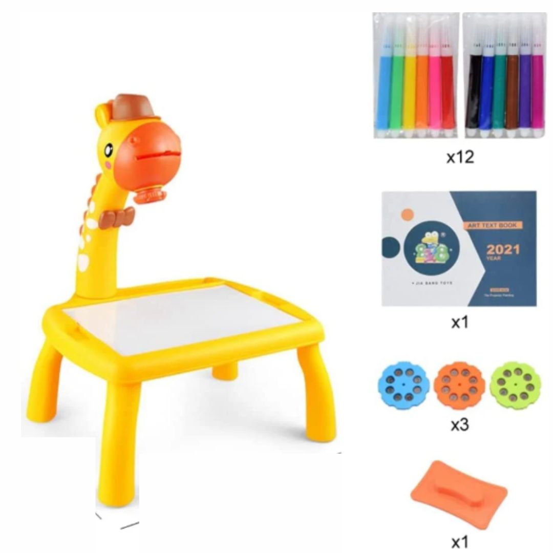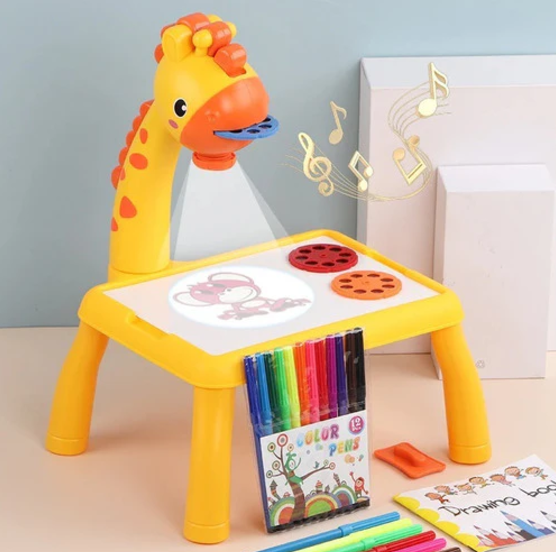 Mejora la capacidad de dibujo de los niños gracias al práctico sistema de iluminación integrado, contribuye en el desarrollo de las habilidades de motricidad fina y capacidad cognitiva en los niños al usar herramientas de dibujo como proyección, colores, papel o pinturas