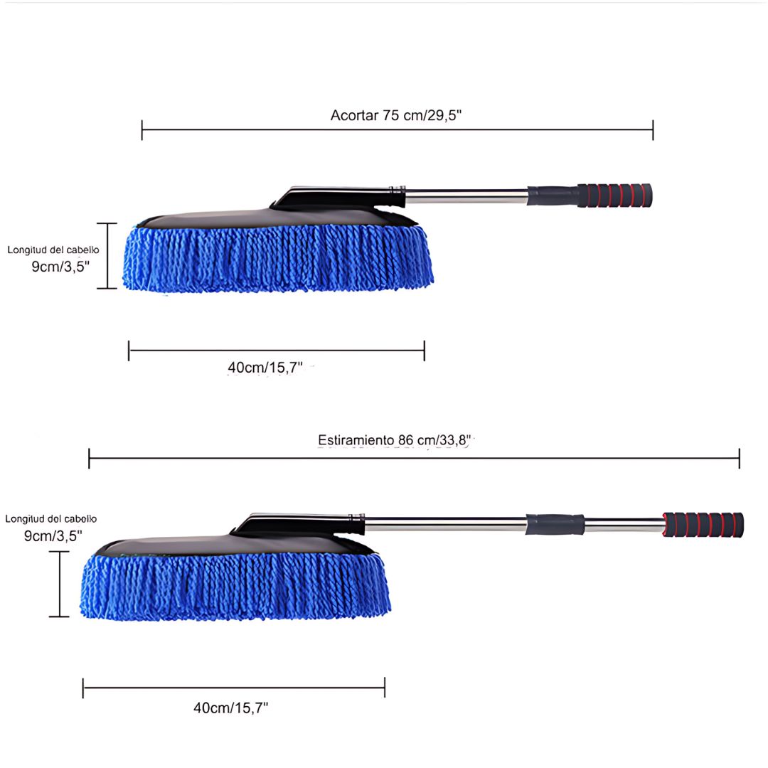 Transforma la limpieza de tu vehículo con nuestra Mopa de Lavado de Coche con Mango Telescópico, diseñada para brindarte eficiencia y comodidad sin igual. Esta herramienta versátil te permite limpiar con agua o en seco, sin necesidad de productos químicos agresivos, garantizando un cuidado seguro para tu auto y el medio ambiente.